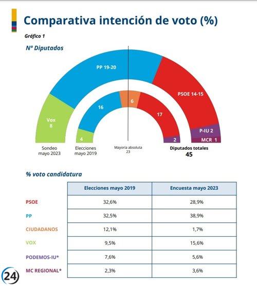 El PP no lograría la mayoría absoluta en las elecciones autonómicas, según encuesta de la UCAM.